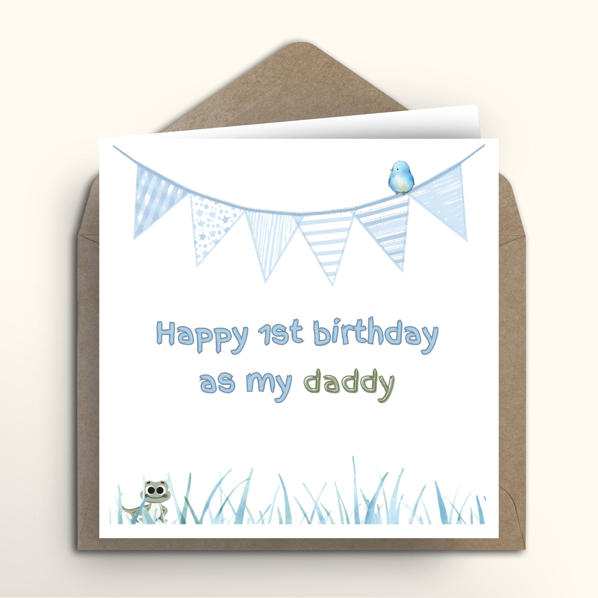 A wonderful happy 1st birthday as my daddy card for that special first day as a father. Personalise yours to add the name of the special dad, or leave as a standard card without a name.