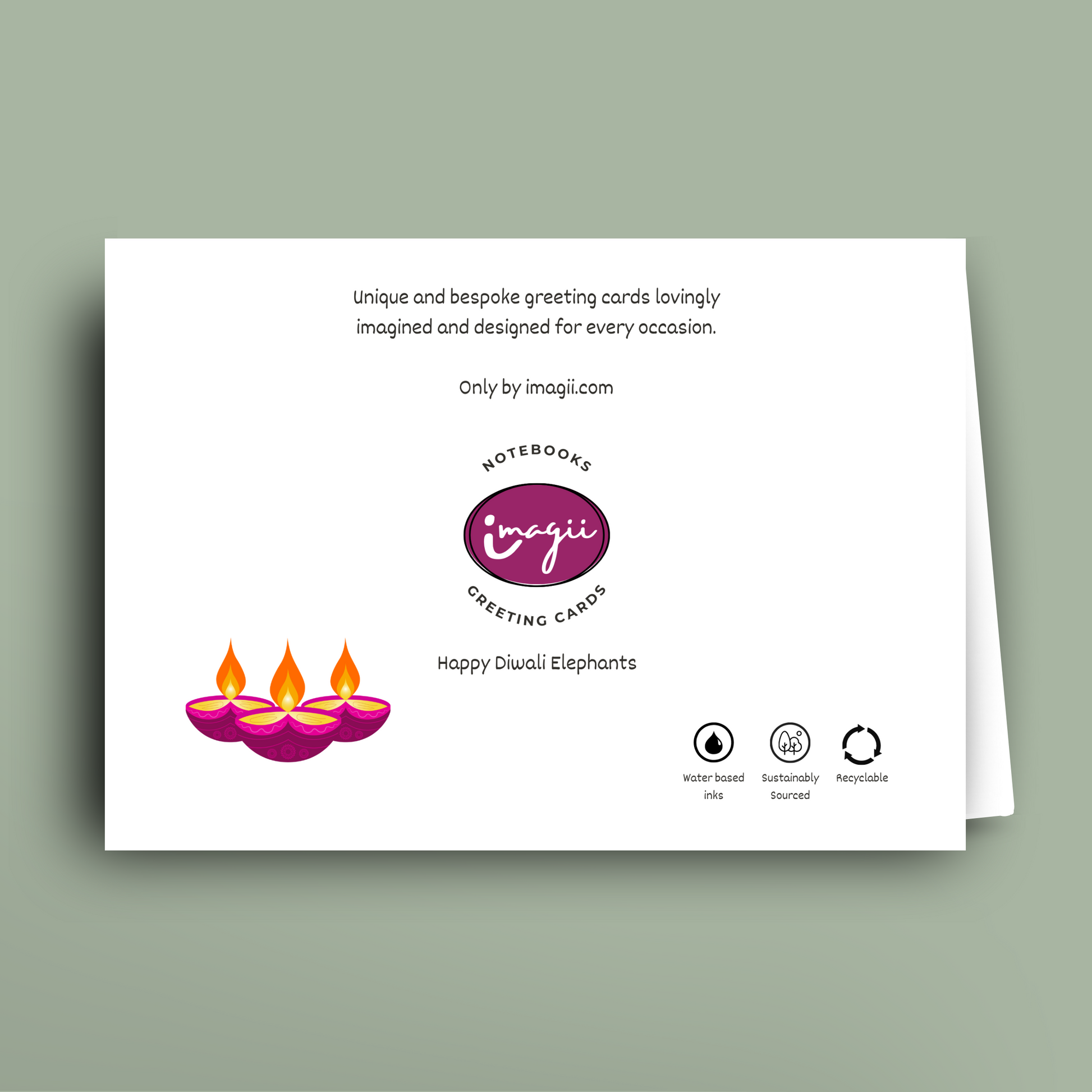 Standard card without personalisation has "Happy Diwali" on the front. This card allows for optional personalisation on the inside only.
