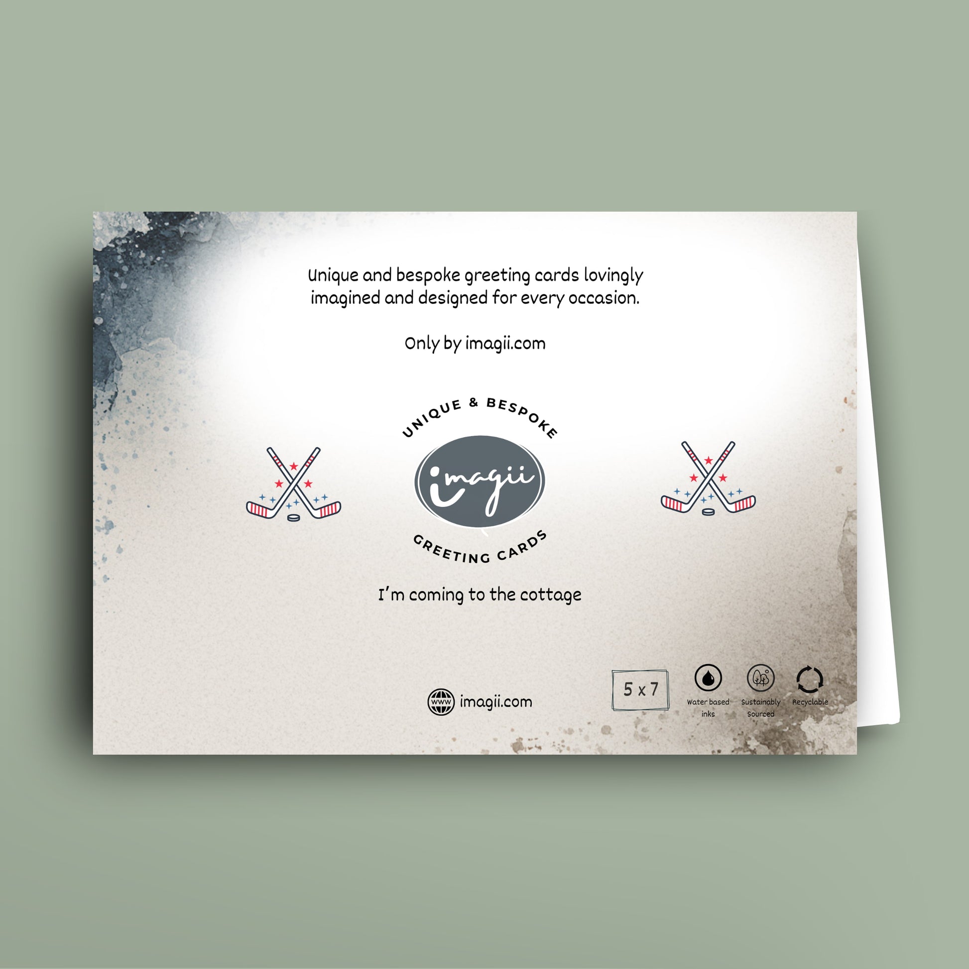 A witty, romance-meets-hockey greeting card featuring two classic hockey jerseys (numbers 24 and 81) and the line “I’M COMING TO THE COTTAGE” with a sweet heart in between. The soft, watercolour-style background keeps it cosy and giftable, making it a perfect cheeky nod to hockey romance, rivals-to-lovers, and LGBTQ+ love stories — ideal for birthdays, anniversaries, Valentine’s, or just because.