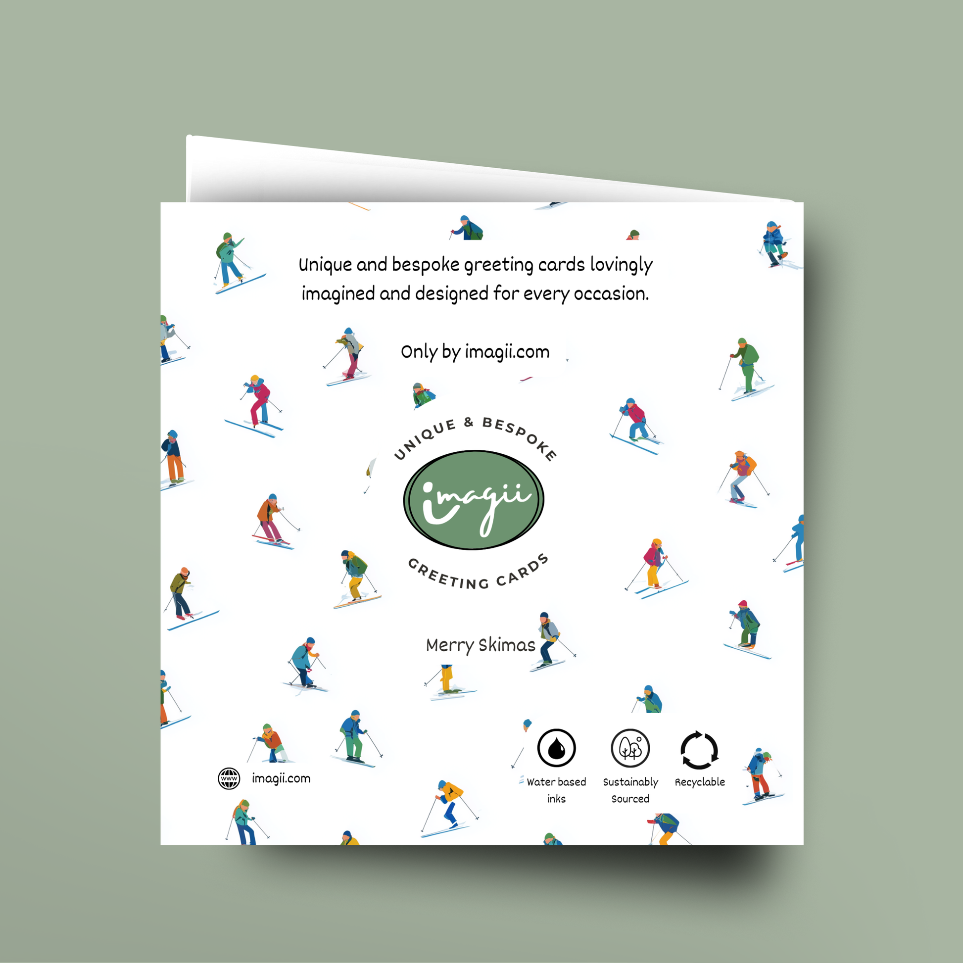 Celebrate the holidays on the slopes with our Merry Skimas personalised Christmas card — perfect for ski lovers, winter adventurers, and little slalom stars alike!