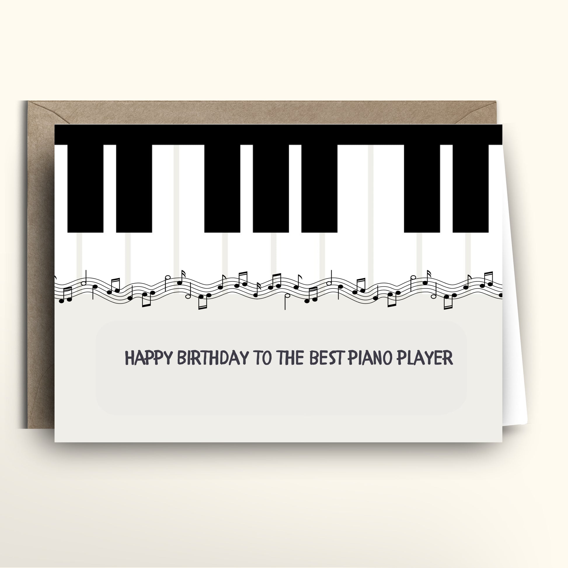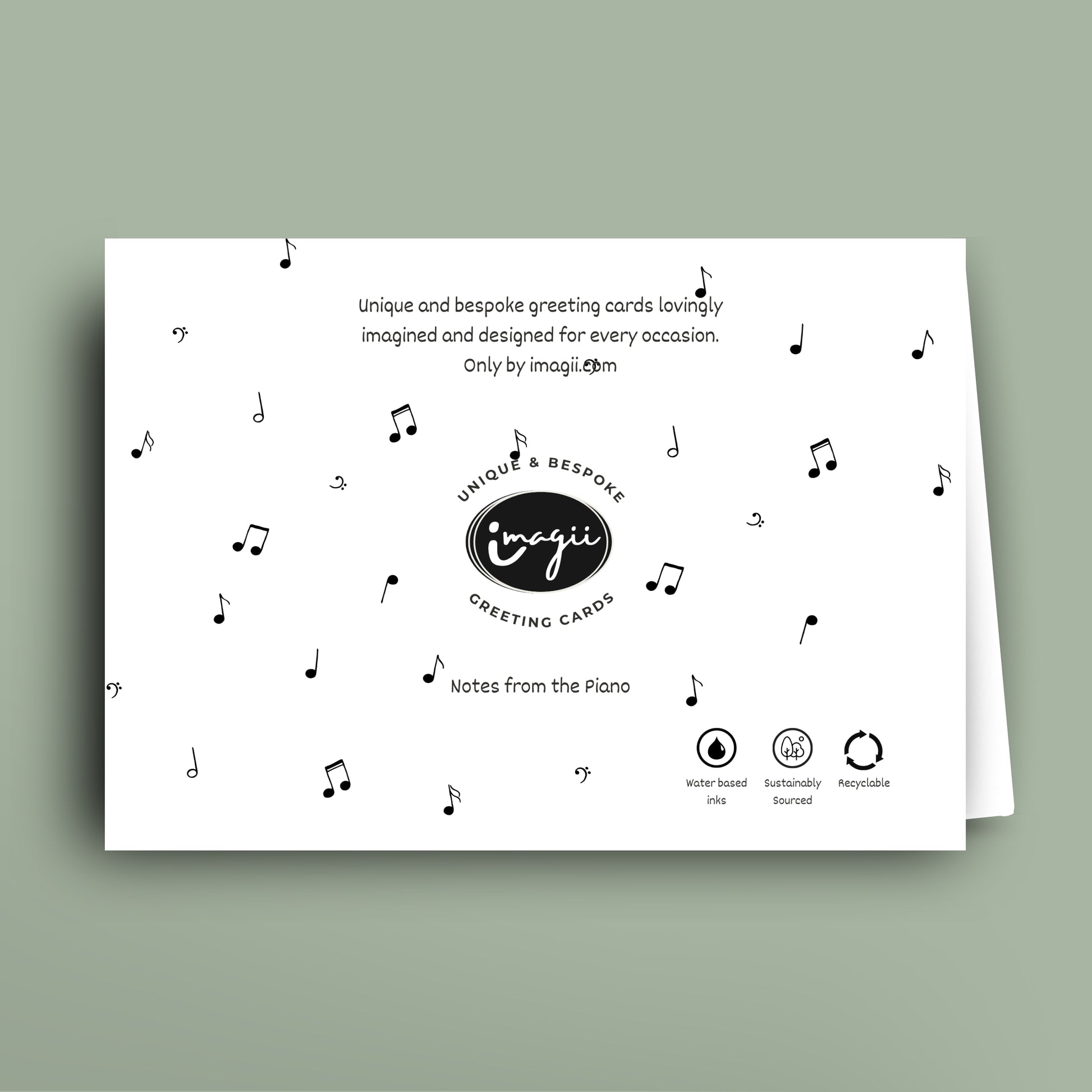 Celebrate musical achievements with this personalised piano card, featuring a bold keyboard design and flowing musical notes. Add any message you like – Happy Birthday, Congratulations or thank You – and customise the name or text to create a unique card for any pianist, piano lover or musician.