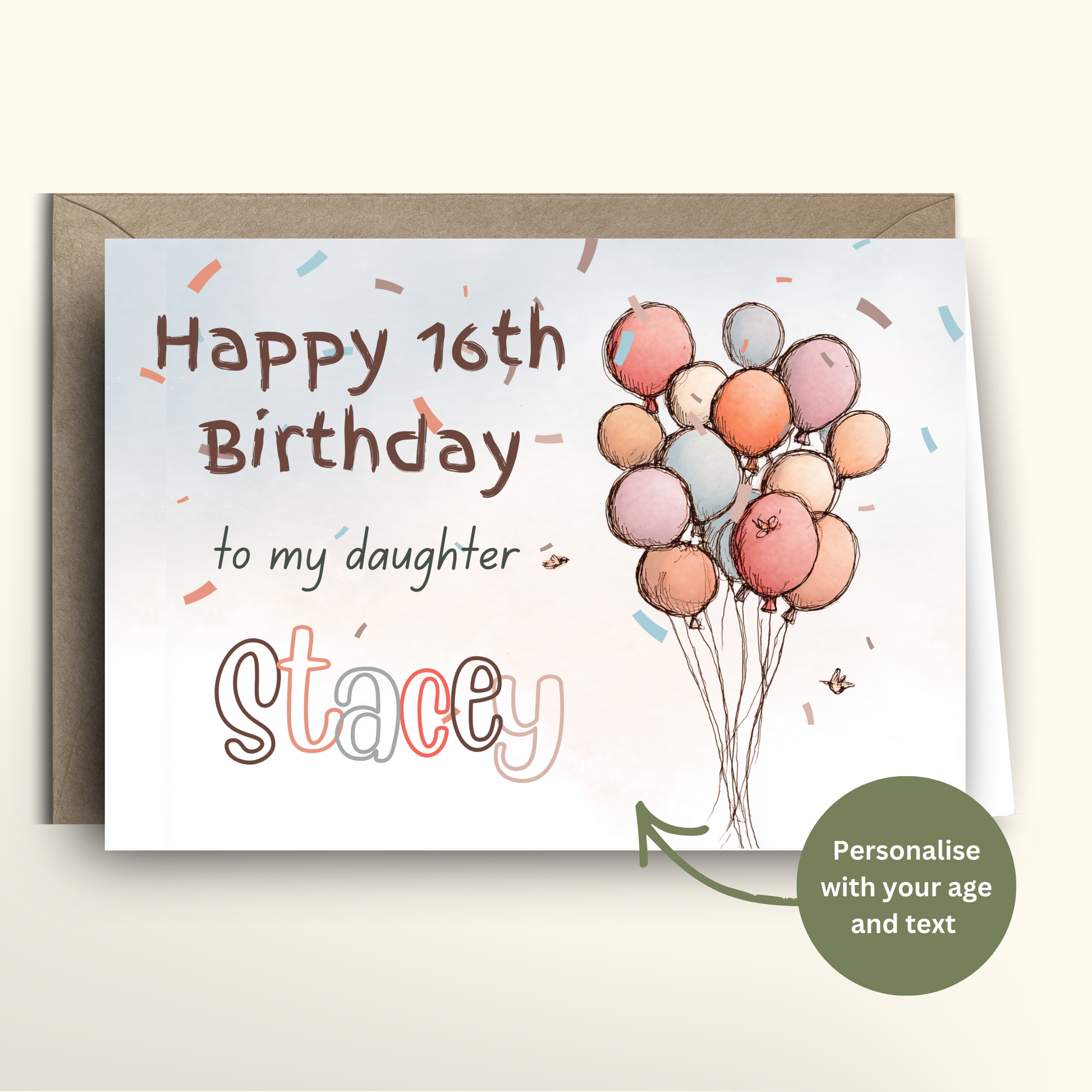 Celebrate a special day with charm and colour. This Happy Birthday card features a whimsical illustration of pastel balloons and playful confetti — the perfect blend of warmth and sweetness. Card will always say 'Happy Birthday' but you can personalise yours with your desired name and age, it’s a keepsake to treasure long after the candles are blown out.
