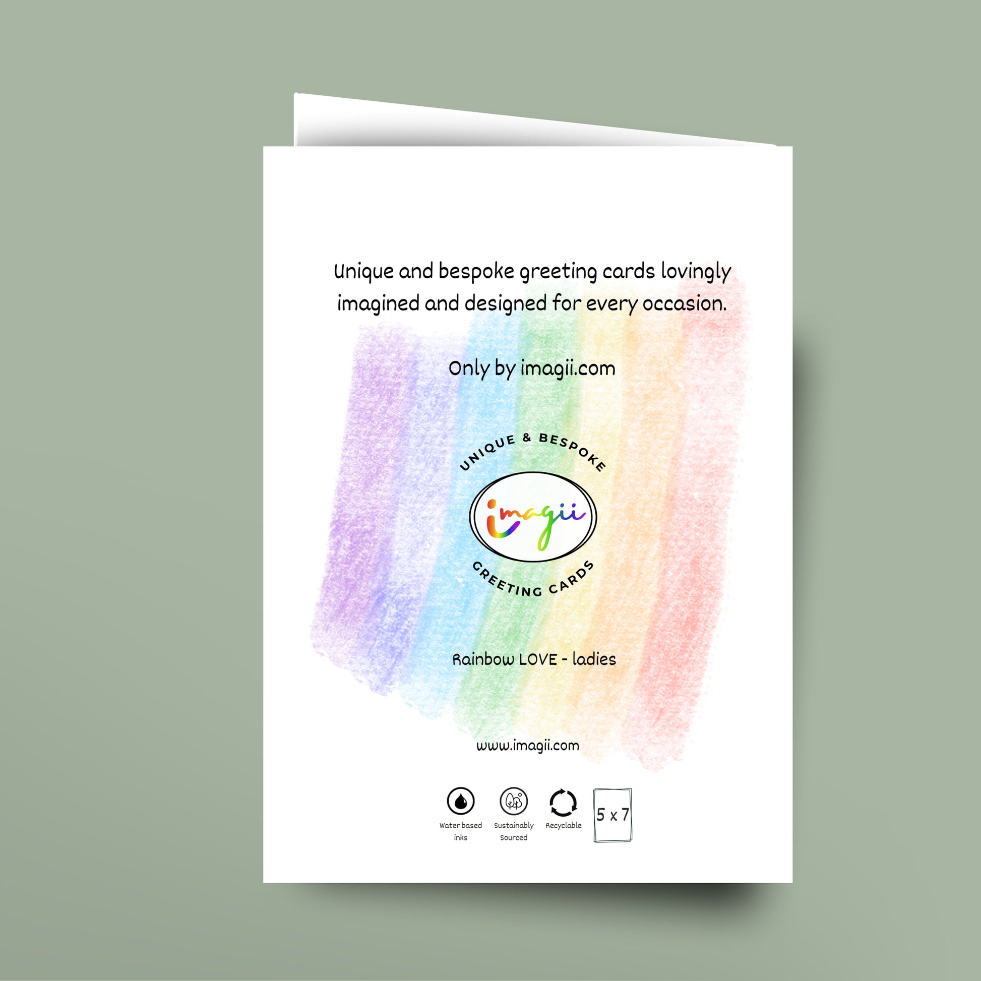 Celebrate Happy Valentine’s Day with this bold and colourful card created especially for lesbian couples. The front features a large rainbow “LOVE” with two hand-drawn women, each holding a cocktail – a fun, stylish nod to LGBTQ+ love. Choose the standard version with just “Happy Valentine’s Day” or personalise with your own name(s) on the front for an extra-special keepsake. A perfect card for women who want something modern, proud and romantic.