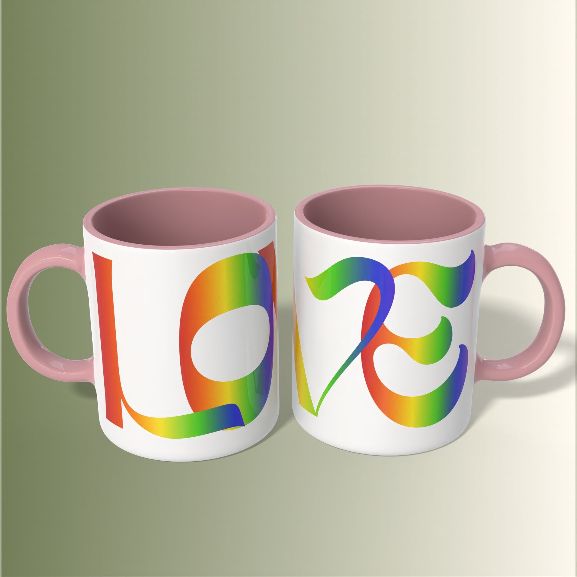 This ceramic mug brings a small, daily celebration of queer joy to every morning. Bold rainbow letters spell out LOVE across a clean white canvas, while your choice of interior and handle color adds a personal pop that reflects who you are. Warm coffee, tea, or cocoa feels brighter in a mug that quietly asserts belonging — whether you're settling into a slow weekend, brewing before a Pride march, or sharing a laugh with friends. The glossy finish makes the colors sing, and the comfortable C-handle fits naturally in your hand. It’s the kind of little ritual object that makes ordinary moments feel seen and vivid.