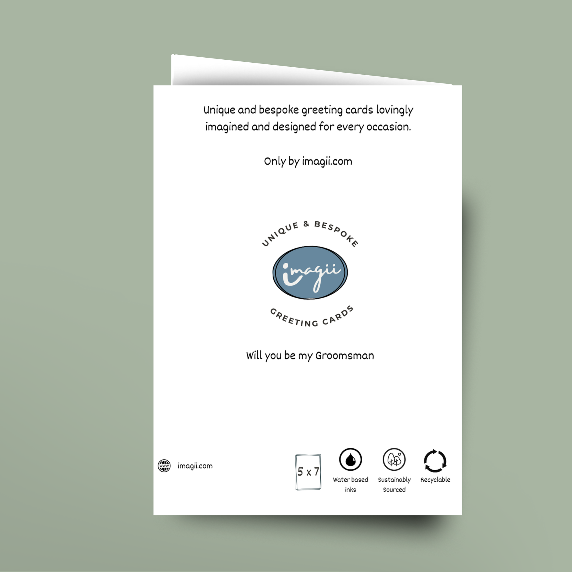 Personalise the sentimental text at the bottom to make it truly yours — perfect for a meaningful wedding proposal inviteto your groom’s party, whether you’re asking a lifelong mate, brother, cousin or best friend. Simply select the 'Personalise Yours' option and add the text you would like in the text box. Alternatively, keep the standard text at the bottom as shown in the product pictures.