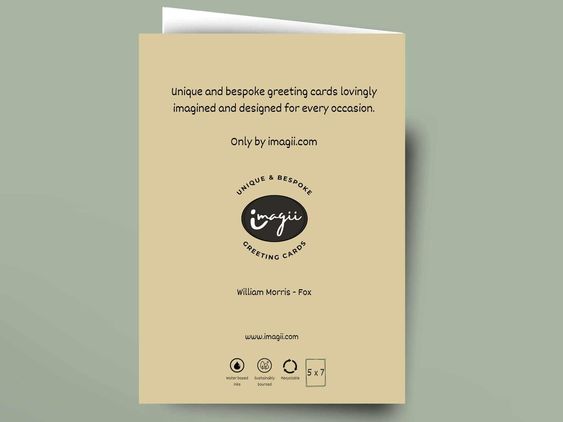 A stunning greeting card inspired by William Morris's legendary Arts & Crafts designs, featuring a majestic fox surrounded by intricate botanical elements. The rich russet-orange fox sits regally against a deep forest green background adorned with flowing vines, roses, and foliage—capturing the timeless elegance of Morris's tapestry work. Woodland natural colors blend bold detail with soft sophistication, creating that perfect balance between statement piece and refined artistry.